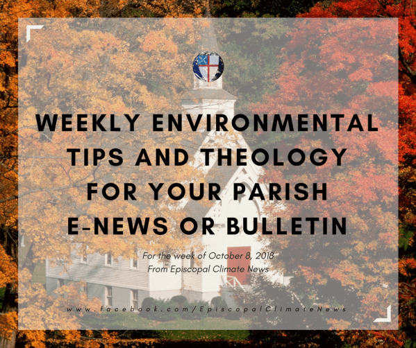 This week's tip is to eat in-season foods this fall, and our quote is from St. Francis of Assisi. Think having a green corner in your parish newsletter or bulletin is a great idea, but don’t have time to research or write one? Episcopal Climate News is here to help! Every Monday, to help Christians... Continue Reading →